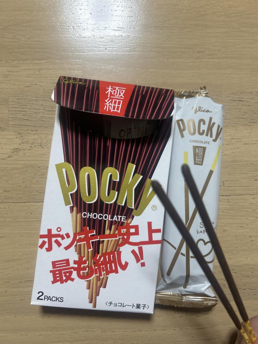 普通のポッキーよりかなり細くて、本数も倍以上あるので食べごたえがあります。極細なのでポリポリと食感がよいので最近はこちらばかり買ってしまいます。美味しいですよ~。