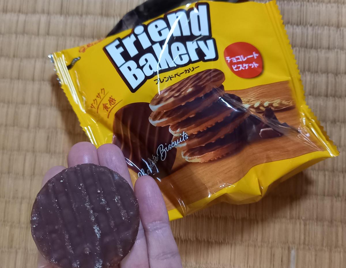 1枚が厚くて食べ応えがあります。ビスケットとミルクチョコの組み合わせなので甘くはあるけど、その甘さがちょうど良くてクドくないので、何枚でも食べれますね。春以降になると気温が高くなって来るのでチョコレート菓子の保存に気を使いますが、フレンドベーカリーは冷やして食べても美味しいと思います。