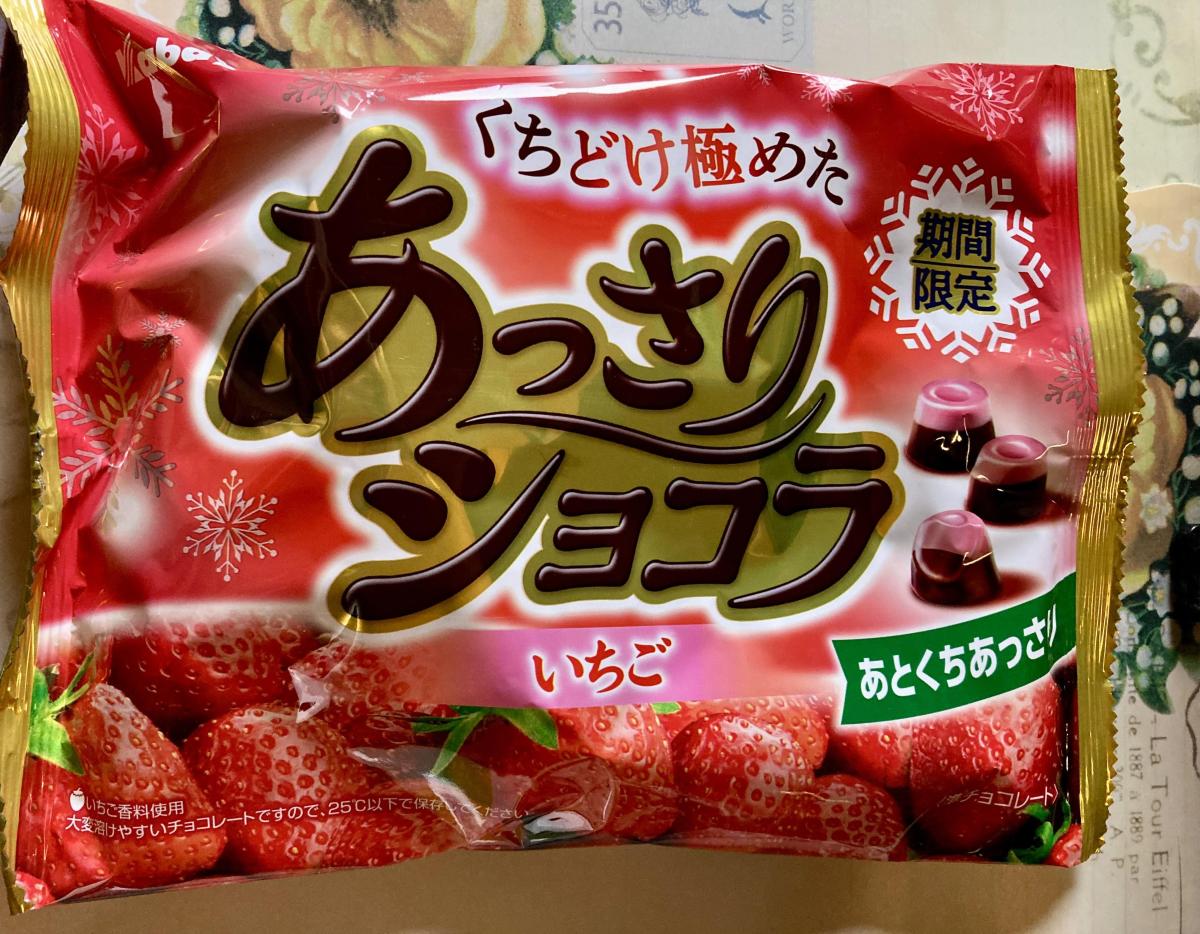 冬季限定の、くちどけが良いチョコレート、『あっさりショコラ』。ちゃんとコクも感じるチョコレートなのに、あっさりとした後味で、ついつい食べすぎてしまいがちなチョコレートです。ノーマルなミルクチョコも好きですが、いちごチョコも好き!ということで購入してみました。