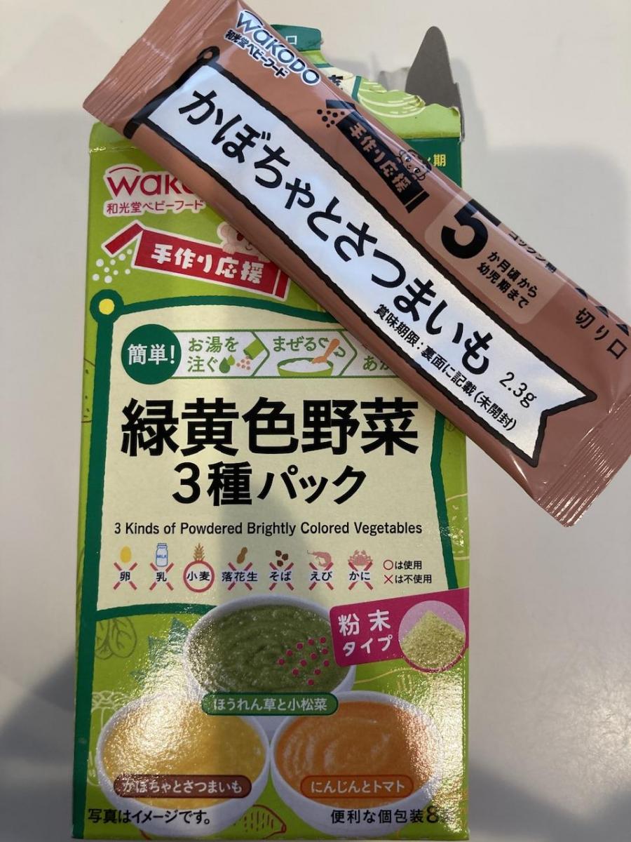 1箱に3種類も入っているなんてお得!それに味も毎日変えられて飽きが来ないのもありがたいです。やはり、野菜の離乳食は手間がすごい大変なのに、お湯をかけて混ぜるだけってホントに神!おかゆにかけたり、そのままあげたりと子どももしっかり野菜がとれて安心です。