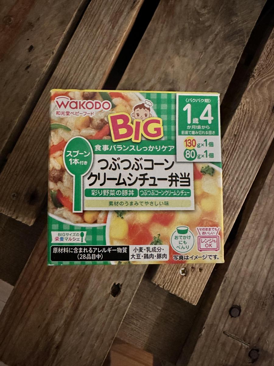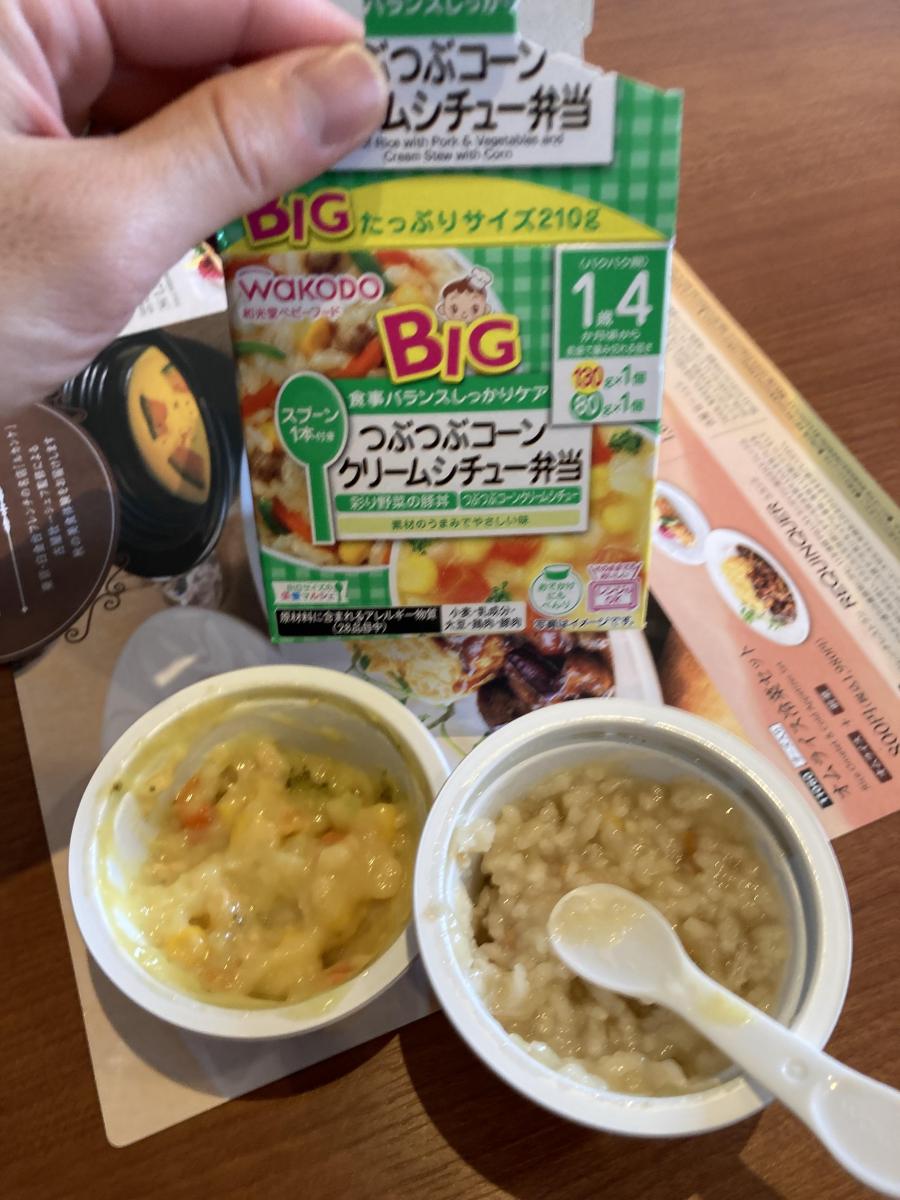和光堂のBIGサイズは、通常より容量が多めで、たくさん食べるこどもがいると、大変助かります。