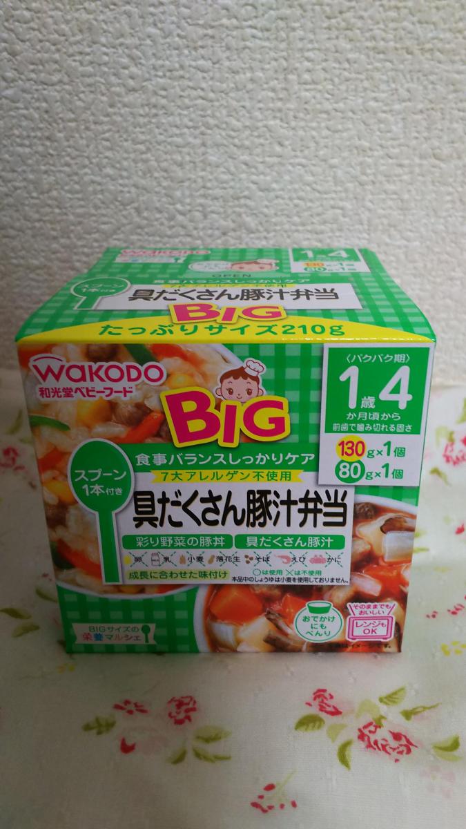和光堂のベビーフードはとにかく便利でよく利用します。ビッグサイズはたくさん食べるうちのこも満足できる量で、味、香りともに1歳のこどもには十分おいしいです。とろみがあり食べやすいですね。やわらかいですが、月齢に応じた肉や野菜のかたさも残っているので、食感も楽しめていつも嬉しそうに食べています。
