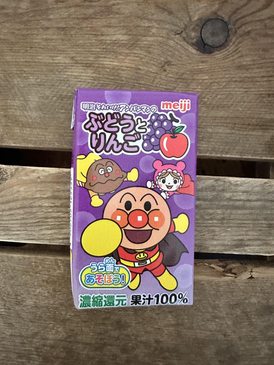 子どもが大好きなアンパンマンの濃縮還元ジュースです。ぐずったりした時にあげると、すぐに機嫌が戻ります。恐るべしアンパンマンパワー!