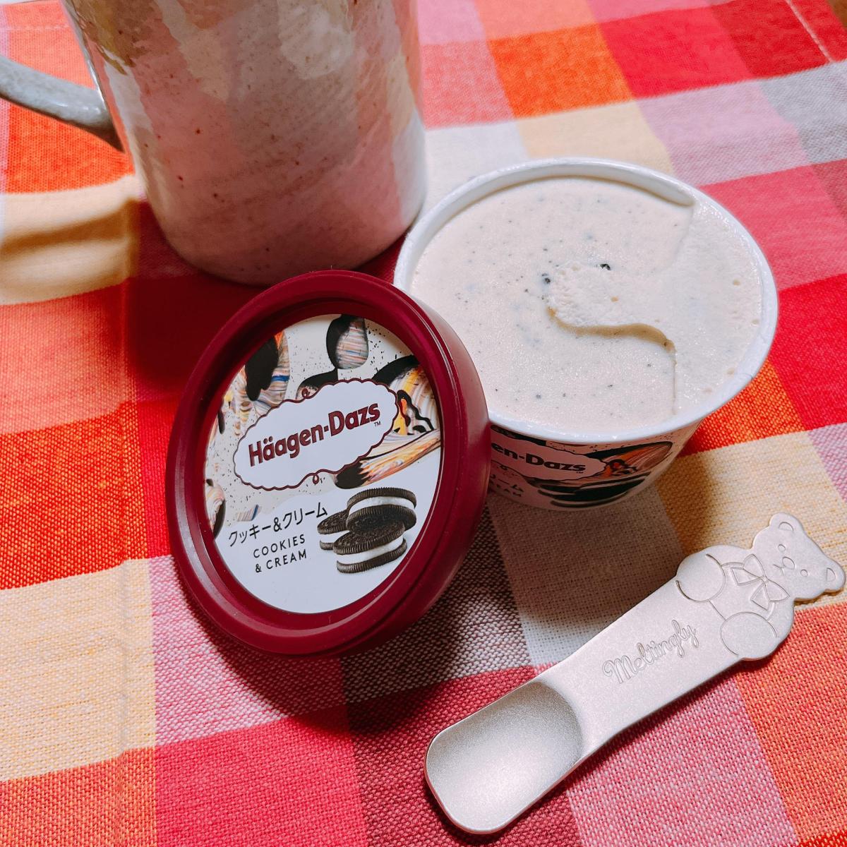 ハーゲンダッツ ミニカップのクッキー&クリーム味が食べた事がなかったので気になり購入してみました。結構クッキーの味が強い気がしました。甘さもあるけど塩味もかなりありましたココアの風味はそこまで苦みがなく食べやすいあじわいでした。クリーミーなバニラアイスとクッキーのバランスが最高でした。ちょっとしたご褒美に食べたいアイスです