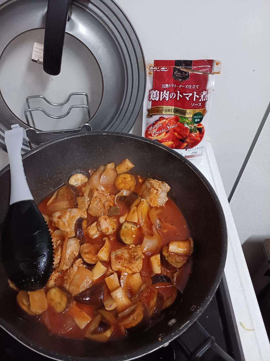 鶏モモ肉を焼いて玉ねぎ、なすを炒めてトマトソースを入れて煮込むだけで本格的な一品が完成さました。トマトソースにチーズも溶け込んでいるので、濃厚なシチューのような風味が美味しかったです。調理が簡単な点もおすすめです。