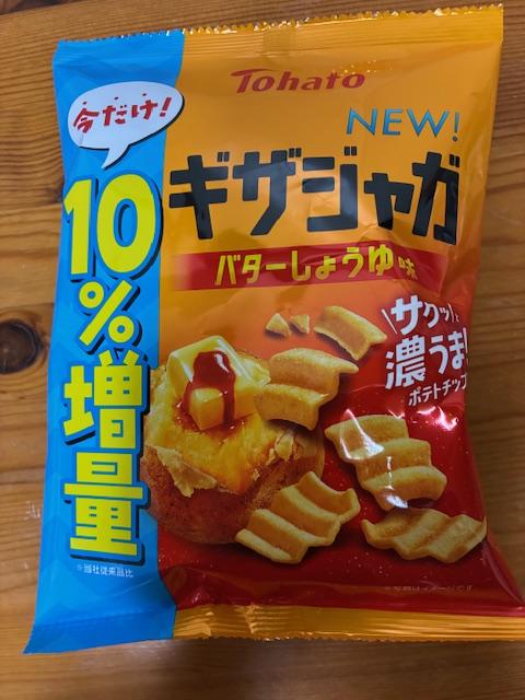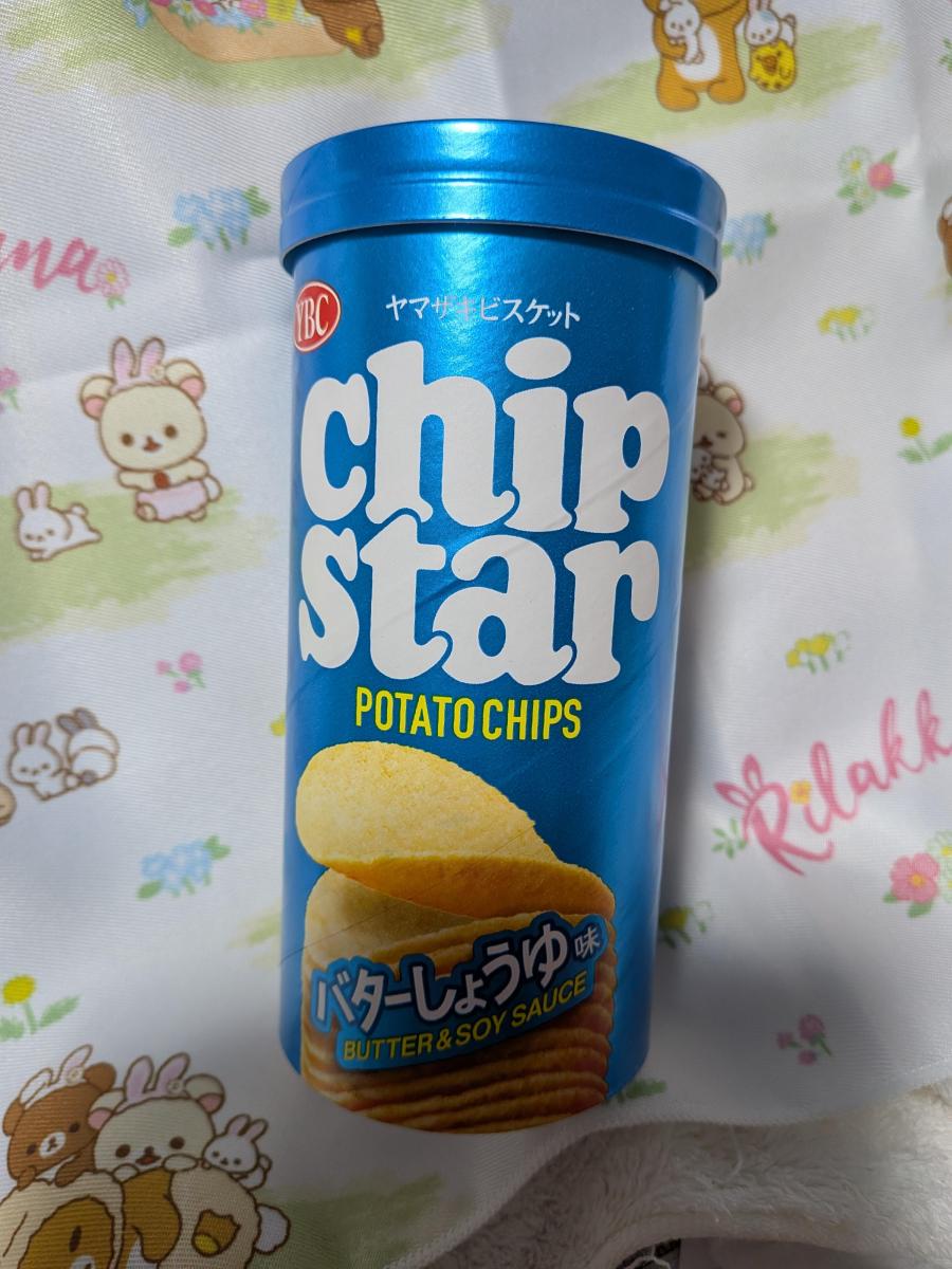 鮮やかなブルーの筒状のパッケージに入ったチップスターです。バターしょうゆ味ということで、試したくなりました。