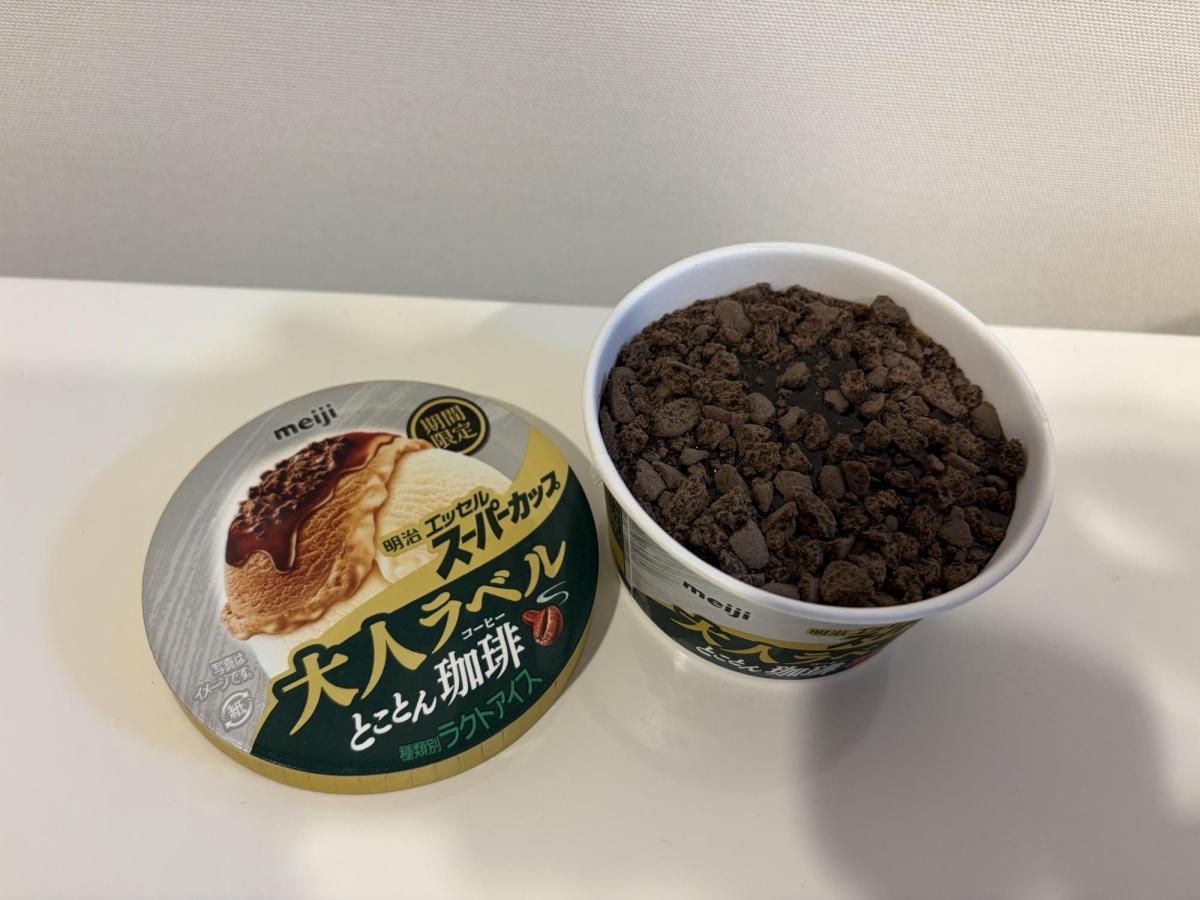 ざくざくした珈琲リキュール香るクッキー。エスプレッソソース、エスプレッソ風アイス、カフェオレ風アイスが層になっていて、味の統一感もあり、まろやかで食べやすく食べ応えありなコスパのいいアイス。