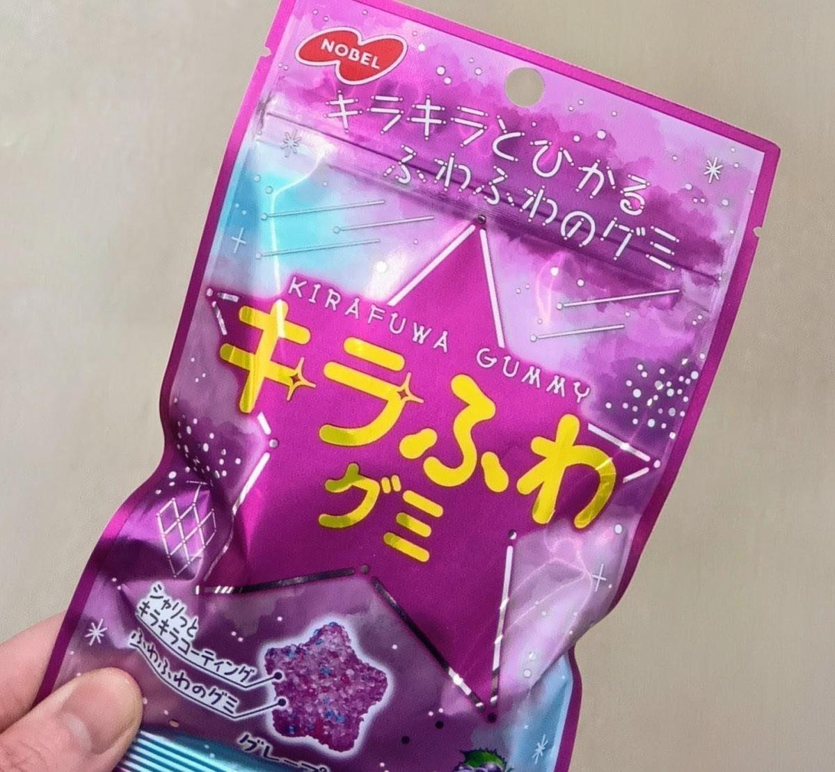黄色の星型でキラキラ光るコーティングがかわいい〜!シャリシャリ食感の砂糖のようなコーティングがクセになる唯一無二感のあるグミ。